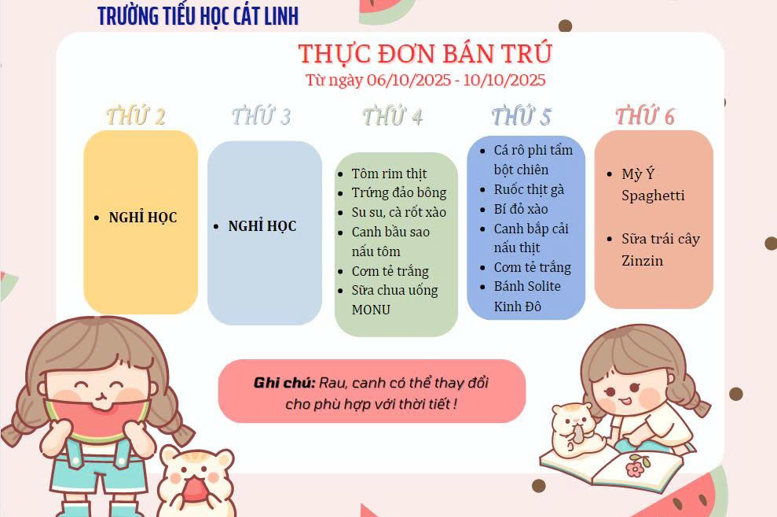 THỰC ĐƠN ĂN TRƯA TRƯỜNG TIỂU HỌC CÁT LINH TUẦN 1-2 THÁNG 5/2023