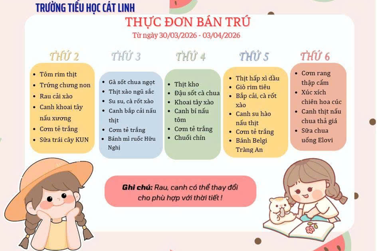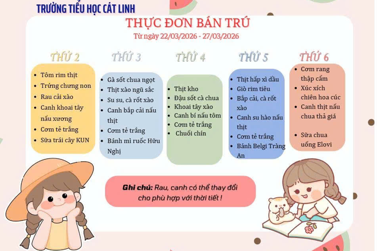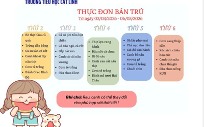 Thực đơn bán trú tháng 12/2025 trường Tiểu học Cát Linh