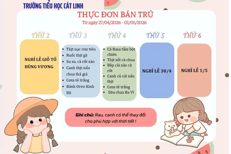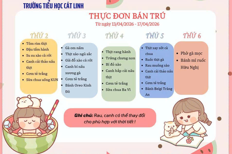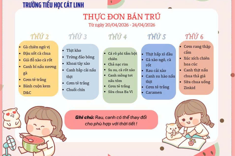 Thực đơn bán trú tháng 12/2025 trường Tiểu học Cát Linh
