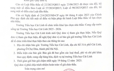 Trường TH Cát Linh thông báo về việc bán thanh lý vật tư thu hồi theo hình thức niêm yết giá