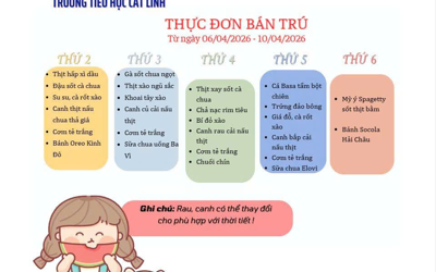 Thực đơn bán trú tháng 12/2025 trường Tiểu học Cát Linh