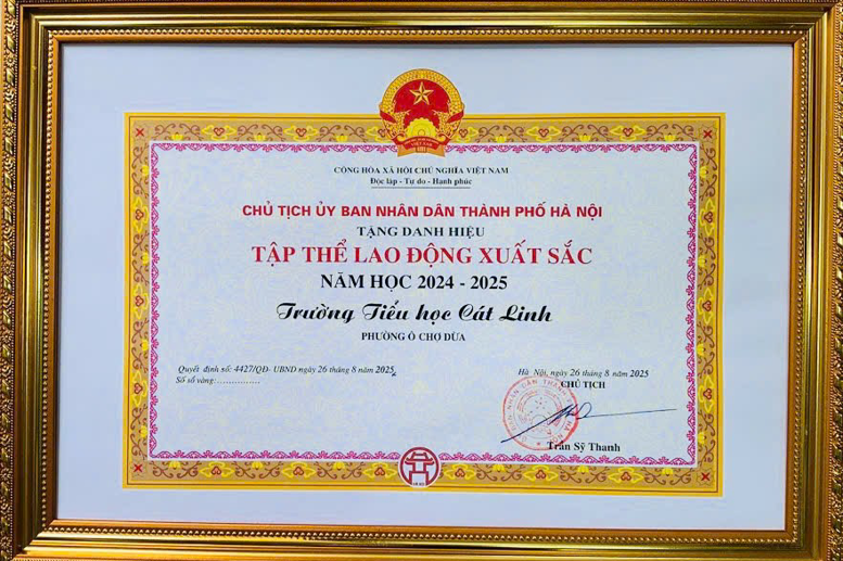 💕 Cùng với những nỗ lực bền bỉ trong công tác quản lý và nâng cao chất lượng giáo dục, Trường Tiểu học Cát Linh vinh dự được Chủ tịch UBND Thành phố Hà Nội trao tặng danh hiệu "Tập thể lao động xuất sắc năm học 2024 - 2025".